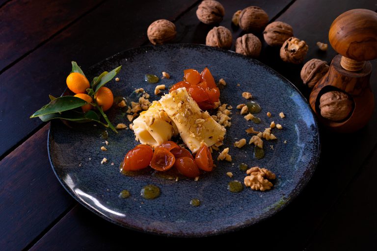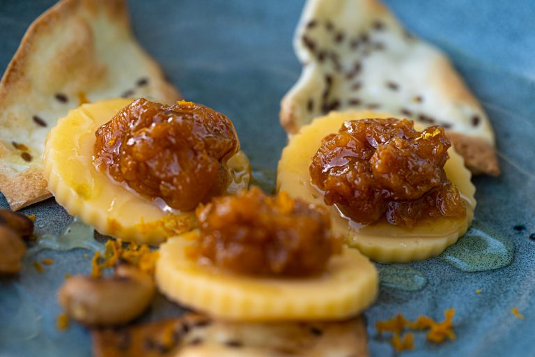 Confitura de Níspero, Queso Gouda y Galletas con Sésamo