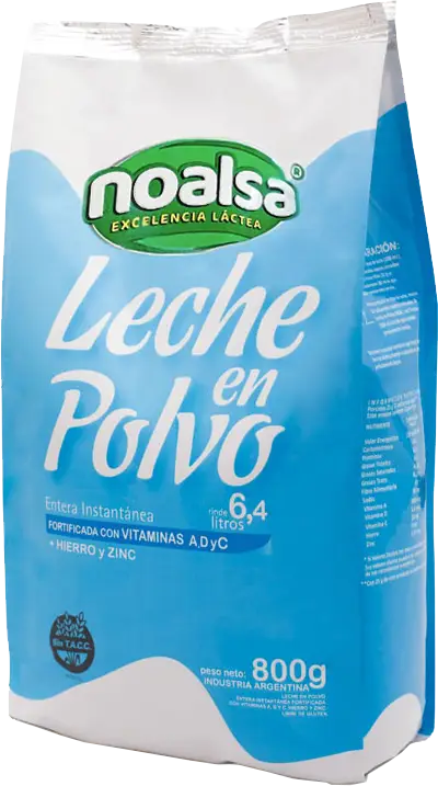 La leche en polvo pasa por un estricto proceso de deshidratación de la leche entera por sistema de spray, convirtiéndola en polvo sin perder sus propiedades naturales. Un polvo uniforme, sin grumos, de color blanco amarillento, de sabor agradable semejante a la leche fluida entera. Aporta vitaminas A y D, proteínas fósforo y calcio.