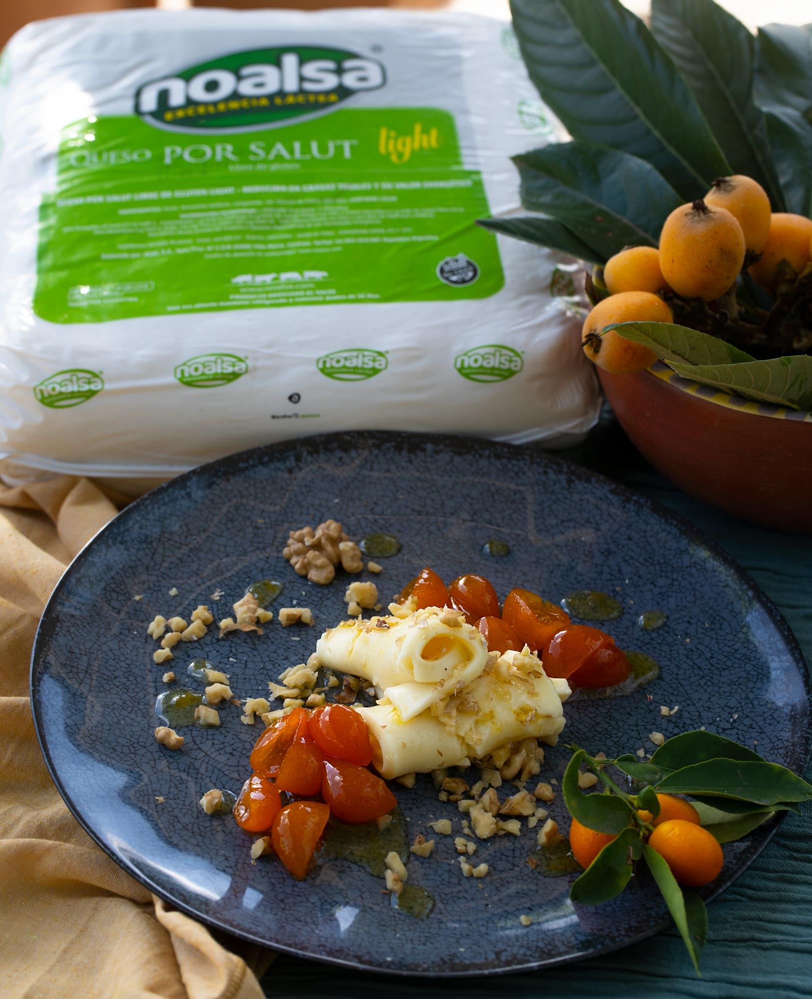 El contraste del queso por salut light Noal con el dulce de los quinotos y la nuez hace de este manjar una comida simple pero original✨