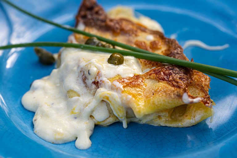 Mezclar la crema con reggianito rallado, sal y pimienta. Bañar los crepes y gratinar en el horno